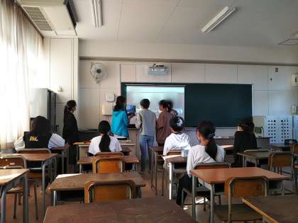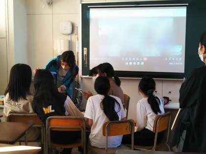 お互いの委員会の取り組みを発表したり、今後の進め方など意見の交流をしました。遠く離れた高知県の小学生とオンラインで直接話すことで、大阪との違いなどがリアルにわかり、委員会の人たちも関心をもって取り組んでいました。