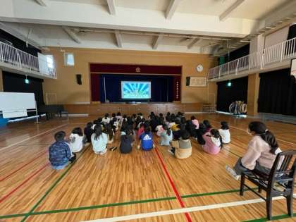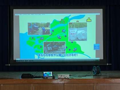 まずは、映像を見て、浄水場のしくみやもしものことがあった場合などについて学びます。