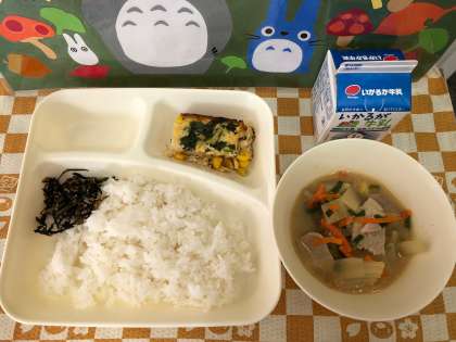 今日の千草焼きには、鶏肉、とうふ、コーン、みつばが入っています。