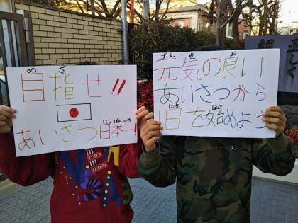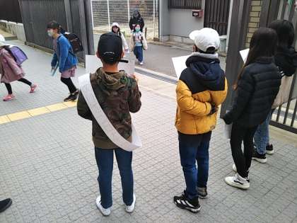 昨日からあいさつ運動が始まりました。計画委員の人がタスキやポスターを作って、朝から玄関で「おはようございます」と元気にあいさつをしてくれています。みなさんもしっかりとあいさつをしてくださいね。あいさつを交わすと今日一日が爽やかな気持ちになりますよ。あなたも「あいさつ名人」を目指してください!