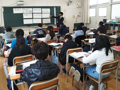 「『弱いロボット』だからできること」を音読し、理解したことから自分の考えをまとめていきます。クラスで意見を交流し、黒板の大きな付せんを並べ替えました。
