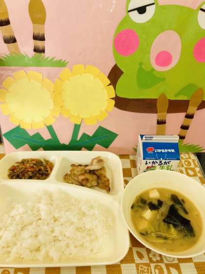 今日は、豚肉、ごぼう、にんじんをいためて作ったきんぴらごぼうです。