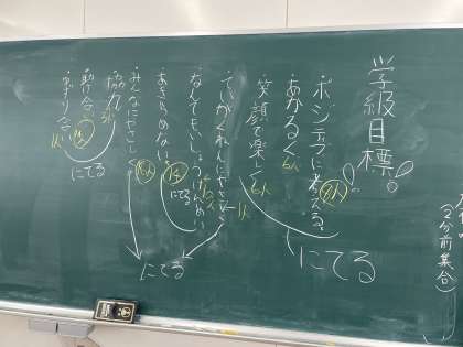 先日、学級活動の時間に学級目標を話し合いました!話し合いは代表委員会の2人が進めてくれました。目標に取り入れたいワードをクラスみんなで出し合い、話し合うことができました。