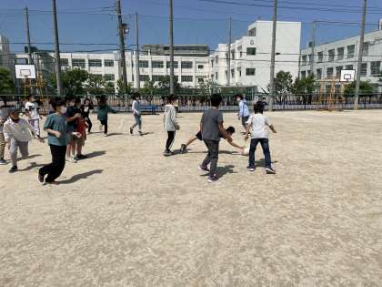 今日は天気がよかったので、休み時間には1組、2組混ざってドッジボールをしました!
