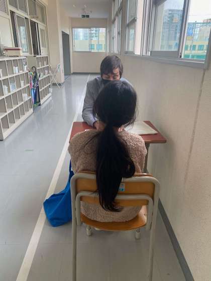 ダニエル先生と、英語で会話をするテストがありました。始まるまでは「大丈夫かな…」と不安そうな様子でしたが、しっかりと練習の成果が出ていました!