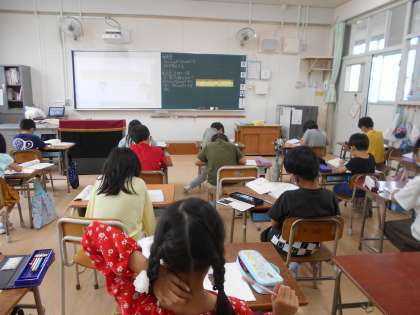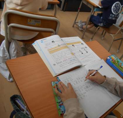 今、算数科では「長さ」の学習をしています。慣れない竹の30cmものさしに苦戦する子もいますが、身の回りの色々なものを測って「〇cm□mm」で表しました。