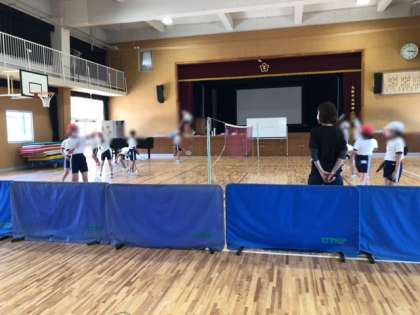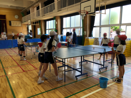 講堂では、卓球クラブとバトミントンクラブが活動していました。