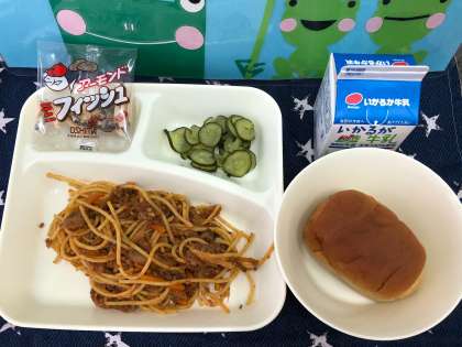 今日の給食では、きゅうりを砂糖、塩、ワインビネガー、うすくちしょうゆで作った液につけています。