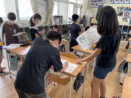 5年生の外国語では、好きな教科を友だちとたずね合いました。教科を英語で言うことにも慣れてきました。やはりP.E.が人気でした。