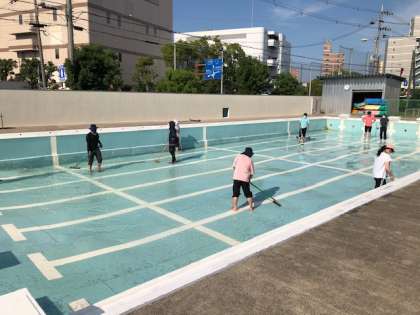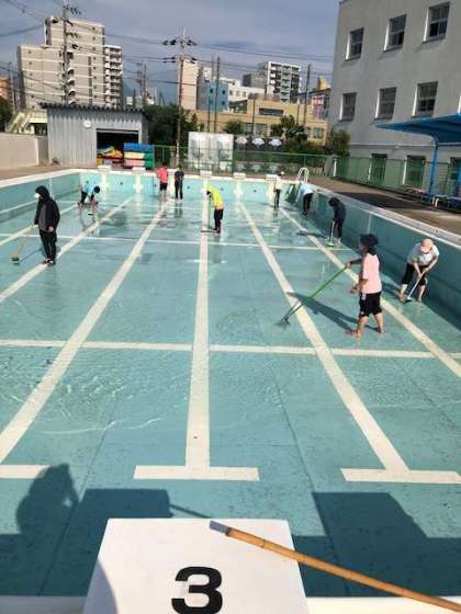 プールの水の入れ替えと、キレイに掃除をしました。
