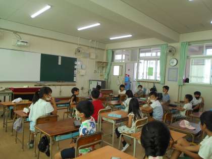 今日の児童集会は「声あてクイズ」でした。放送を聞いて、どの先生の声か当てるゲームです。「これは絶対〇〇先生や!」と予想したのにはずれてしまったり、「もしかして、□□先生…!?」と自信がなかったのに合っていたりして、正解が発表されるたびに歓声が上がりました。2年生の先生も登場しましたよ!集会委員のみなさんの司会進行がとても上手でした。
