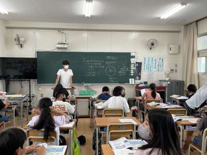 理科では今、台風について学習をしています。社会で学んだ、沖縄はよく台風が通る!というのをしっかりて覚えていましたね。新しいこともたくさん学んでいます。どの学習にも意欲的に取り組む5年生です!