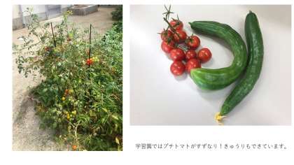 神津小学校の学習園では、夏野菜が栄養をたっぷり蓄え成長中です!