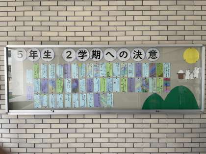 長かった夏休みもまもなく終わりです。学校の玄関も5年生の掲示にリニューアルしています!