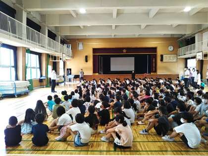 その後、生活指導の先生から「いのち1番、にこにこ2番」を心がけた学校生活を送ってほしいと話がありました。