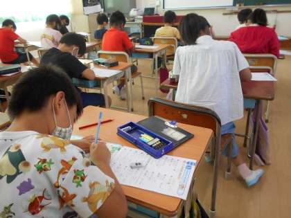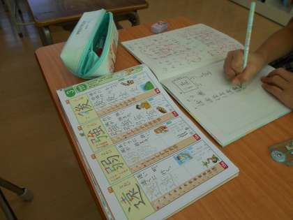 国語の時間に、詩と新出漢字の学習をしました。詩を何度も読むうちに、同じ言葉の繰り返しや韻に気づくことができました。新出漢字は「後」と「強」でした。2学期は画数が多かったり形がとりづらかったりする漢字がたくさん出てきます。細かい部分まで注意して、正しい漢字を身につけてほしいです。夏休み明けだからか、しんどそうだったり眠そうだったりする人が目立ちました。早く生活リズムを取り戻し、元気に楽しく学習に取り組んだり遊んだりできたらいいなと思います。
