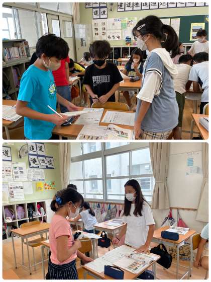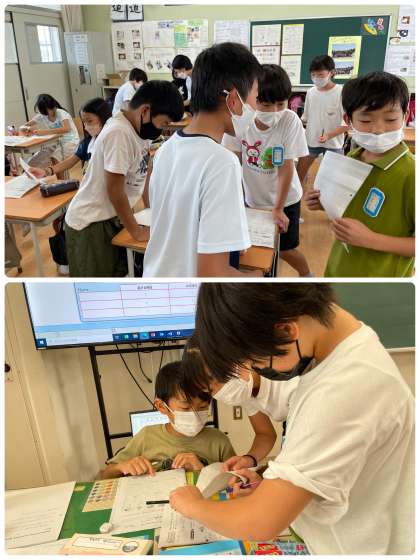 今日の外国語の学習では、友だちと週末にどんなお手伝いをしたかを尋ね合いました。皿洗い、風呂掃除、ゴミ捨てなどを英語で言えるようになっています。今日もとても元気で意欲的に取り組んでいました。また次もがんばりましょう!
