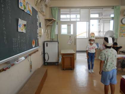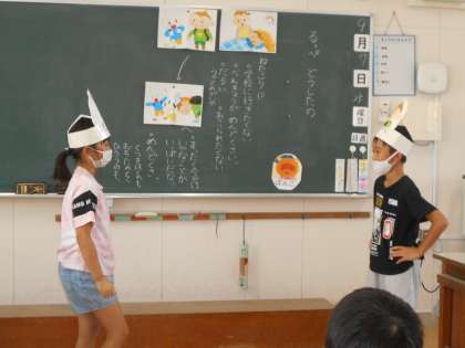 今日の学習は「るっぺどうしたの」でした。朝からイライラして何をしてもうまくいかないるっぺ。最後は、投げていた砂が友だちの目に入ってしまいます。靴のかかとを踏んでいて注意され、直そうとかがんだときにランドセルから荷物がなだれ出てしまう場面では、「これ、あるある!」と、そのときのるっぺの気持ちを考える場面演技にも力が入りました。「るっぺはどうすればよかったのかな?」と、実体験と重ね合わせて考えられる人がたくさんいました。