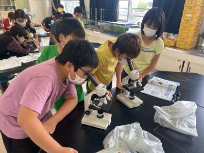 目で見るだけでは小さくてあまり分からないものが、顕微鏡を使うと細かいところまで見えるので、ピントが合ってよく見えるとみんな大喜びでした!他にも色々なものを観察してみたいですね!