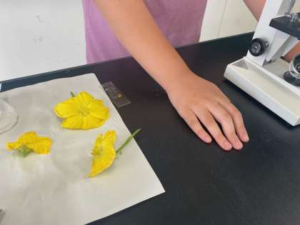 理科の学習では、ヘチマの花粉を顕微鏡で観察しました。倍率を上げると拡大して見えたり、ピントを合わせるのが難しかったり、実際に使ってみて初めて気付くことがたくさんありました!!