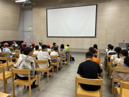 ピース大阪の講堂で、十六地蔵物語を見ます。