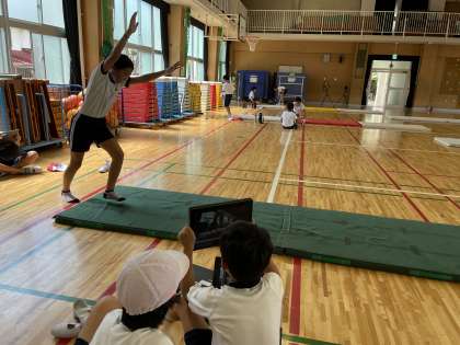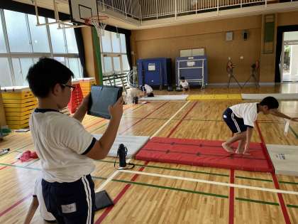 マット運動の学習でした。今日からは技の組み合わせを練習しました。1人1人が技を決めて、3つを組み合わせました。最後には自分の端末で動画を撮ってもらいました。ポートフォリオ形式で練習の様子を溜めていきます。最終的には先生に動画を提出する予定です!テストの結果だけではなく、練習の過程も大切ですよね。これからも頑張ってほしいです!