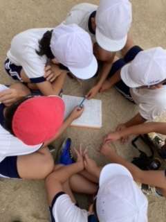 今日はチームに分かれて作戦を立て、表にしてチーム戦を行いました。