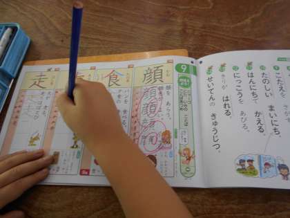 今日の新出漢字は「食」でした。「食」には、「た(べる)」「く(う)」「しょく」と、3つの読み方があります。「しょく」という読み方をする熟語には何があるかを聞くと、「きゅう食」「外食」「朝食」「食パン」「食どう」など、全部で20個も発表することができました。自分で考える例文もたくさん種類ができそうです。