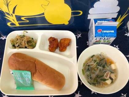 給食では、コチジャン、こいくちしょうゆ、ケチャップ、料理酒、みりんで作ったたれを揚げた鶏肉にからめていきます。
