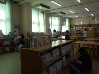 みんな、図書の時間を楽しみにしています。絵本のくにで読んでもらった絵本、定番のゾロリシリーズ、生き物の話や図鑑、小説…。短い時間で自分が読みたい本を上手に選んでいます。運動場で遊べる日も、図書開放に行く人もいます。読書の秋、いろいろな本に出会ってほしいです。