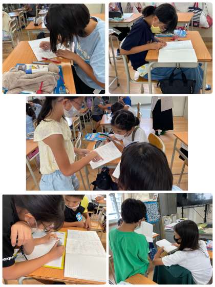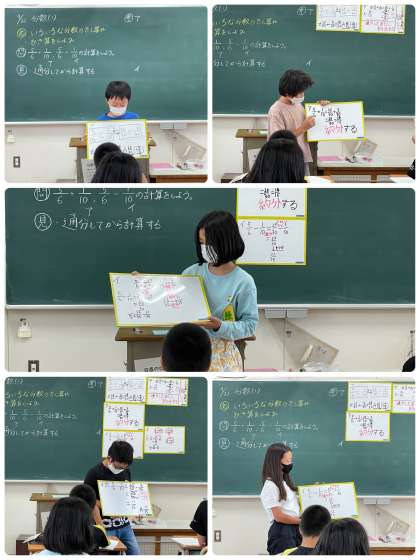今日は答えを出してから、さらに約分をする必要がありました。自分たちで、通分してから計算して、約分をする。という答えを導き出しました。素晴らしかったです。林間もありますが、しっかり勉強も頑張ります!!!