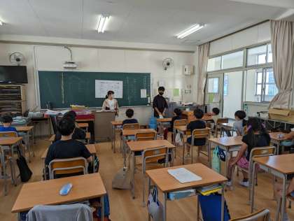 今日はたてわり班に分かれて、10月25日に神津子どもカーニバルのお店決めをしました。