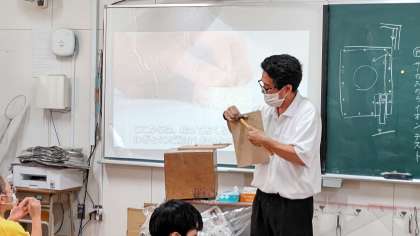 三年生の図工セットには釘を抑える道具が付属しており安全に図工の作品を作ることができるようになっています。思い思いに描いた絵の上に釘を打ってどんなおもちゃができるかな?