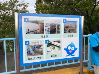 柴島浄水場内の取水塔や排水処理施設などたくさんの施設を見学しました。