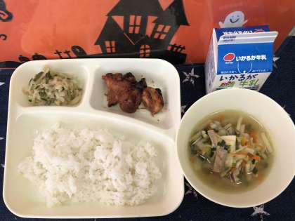 食物せんいは、野菜やきのこ、いも、豆、海そう、果物などに多く含まれています。今日の給食に使われている切干しだいこんも食物せんいが多いです。