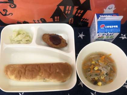 今日の給食では、油であげたトンカツにオーロラソースをかけていただきます❗児童に大人気の味付けです。