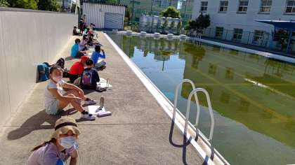 今日は一日を通して観察を行いました。午前九時と正午、午後三時の三回観察をしました。正午の観察の時に太陽と影の位置が変化していたことに気付くと「先生、影の位置が変わってるよ!!」と大興奮でした。時間とともに太陽と影の位置がずれることを観察を通して確認することができました。また、方位磁針の使い方も確認でき、色々なことを学んだ一日でした。