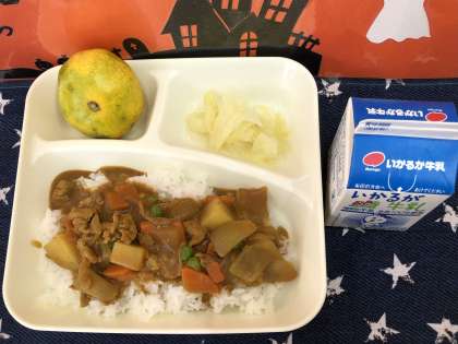 今日の給食では熊本県産の早生(わせ)みかんが登場しました。