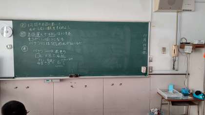 その式を用いて、水槽の量を8等分するとバケツの量になることに気付き答えを導くことができました!