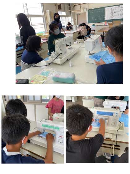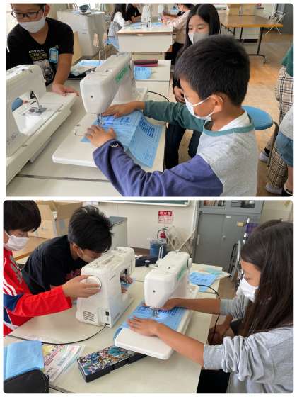 初めてのミシンにドキドキ、わくわくな5年生でした。