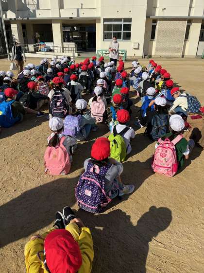 出発前の道の歩き方、電車の乗り方などの説明を受けている様子です。