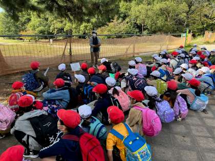 オリエンテーリングの説明を受けて、オリエンテーリングの始まり!オリエンテーリングのゴールは遊具で遊んだり、鬼ごっこをしたりして遊びました。