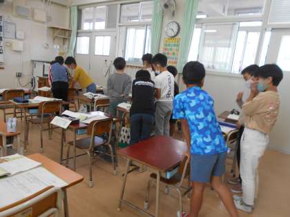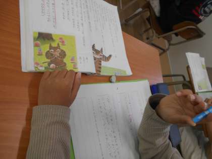 長い時間かけて学習してきた『ニャーゴ』も、いよいよ締めくくりです。先週は2年1組で授業があり、見に来た他の先生方に「音読が上手。」「気持ちを込められていた。」とたくさん褒めてもらいました。班ごとに場面演技をする時間には、どの班も臨場感のある音読を披露しました。今日は「『ニャーゴ』の話を1文で表すならどうなるか。」と、学習を終えた感想を書きました。みんな、はじめは子ねずみたちを「食ってやる」と思っていた猫のたまおじさんが、子ねずみたちのやさしさに触れて戸惑ったり感化されたりする様子がよく読み取れていました。