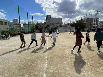 1.2組合同で毎日遊んでいます。ドッジボールをしている時に、揉め事やトラブルがある時があります。そんな時は、みんなが楽しく遊ぶためにはどうしたらよいか。ということを考えるようにしています。