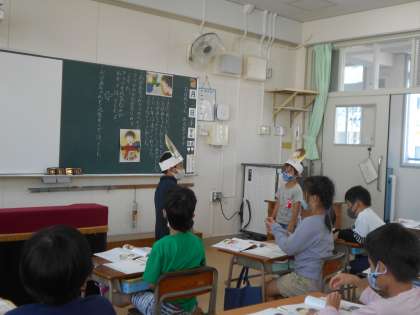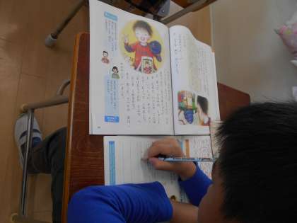今日は「たいせつなかぞく」『おばあちゃんへお元気ですか』を学習しました。大きくなっていくてつやくんと反対に、年をとって今までで普通にできていたことをしんどく感じてしまうおばあちゃん。なかなか会うことはできなくても、お互いを思いやる気持ちや感謝の気持ちを伝え合うことができるということに改めて気付くことができました。「会ってつたえる」「手紙を書く」「電話をかける」。「ありがとう」の伝え方はたくさんあることも、みんなで確認しあいました。
