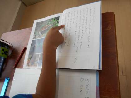 『ビーバーの大工事』の学習では、まとめに入っています。「ダムづくりのひみつ」「体のひみつ」「巣づくりのひみつ」についてしっかり理解できている人がほとんどです。ビーバーは小さな体で大きな木を切り倒し、木の枝をくわえてそのまま水にもぐり、最長15分も水の中にいることに驚く人が多かったようです。聞き慣れない言葉や難しい言葉も出てきますが、すらすらと間違わずに音読もできるようになってきました。みんなの成長を感じます。