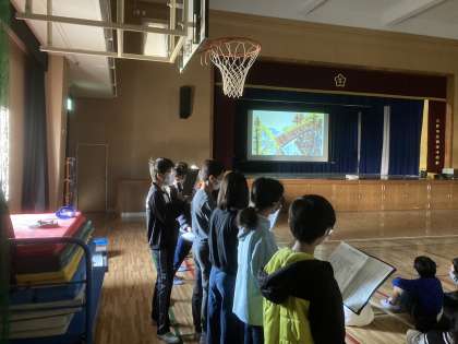 「三びきのやぎのがらがらどん神津小学校図書委員会バージョン」というお話でした。途中のクイズは大盛り上がり!図書委員会のみなさん、毎朝集まって朗読の練習、お疲れ様でした。練習の成果が出て、とても良い発表になりました。