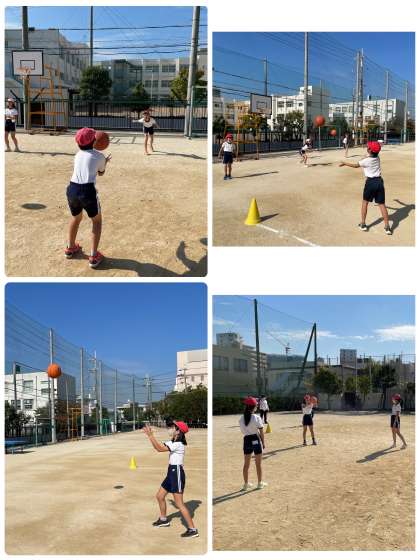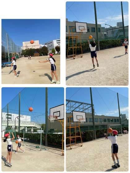 バスケットボールの学習に入りました!今日はドリブル、パス、シュートの基本的な練習をしました。簡単そうに見えたドリブルもなかなか難しくどんなドリブルをすればいいかをみんなで考えました。パスもチェストパスやオーバーヘッドパスなどの練習をしました。シュートにも何度も何度も挑戦しました。次も怪我なくできるように、頑張りましょう!