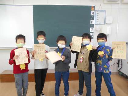 ついに、1〜9の段の「のぼり」「くだり」「チャレンジ」すべてに合格した『九九マスター』が誕生しました!!今日は初日に達成した5人の九九マスターたちにメダルが贈られました。長かった道のりを振り返り、5人とも嬉しそうでした。他の人たちにも、最後まであきらめずに取り組んでほしいです。