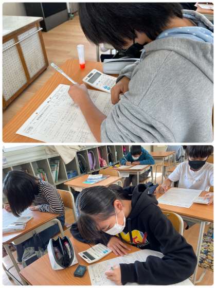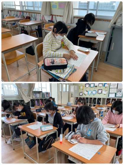 「単位量あたりの大きさ」のテストでした!混み具合や人口密度を求める問題がありました。立式するのがすごく難しく、授業で習ったことを思い出しながら一生懸命頑張りました。5年生は1番学習する内容が多く、大変な単元が多いです。難しいですが、大切な学習なので、1単元、1単元大切に学習しています。明日からは分数の学習です!がんばりましょう!